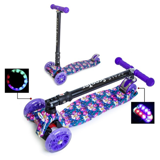 Самокат триколісний дитячий Maxi складаний кермо колеса светяться. Орхідея.